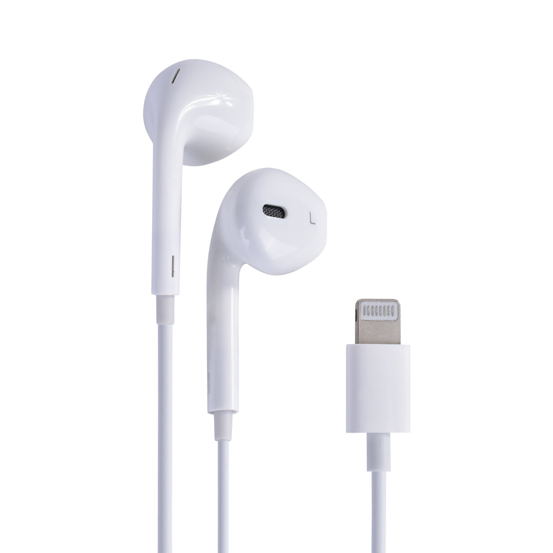 Bluetooth® compatible with Apple devices. Features: Hands free Maximum comfort High quality Specification: Style: Against-The-Ear Pug: Lightning Function: Mic + Volume Control Length: 1.2m Speaker Diameter: 7mm Wire Material: Copper, TPE Insulation & Coating Cord: White