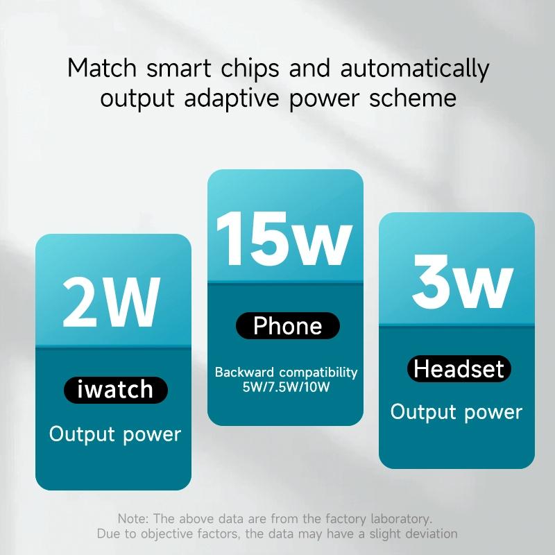 • Charging Power: Mobile Phone: 15W / Watch: 2.5W / Earphone: 3W