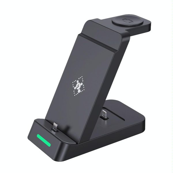 18W 3 In 1 Wireless Charger Stand For Iphone & Apple Watch – Black