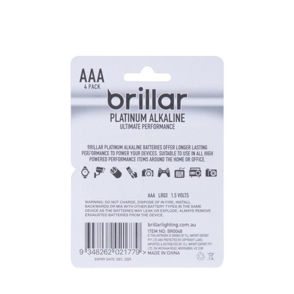 Brillar platinum alkaline batteries offer a longer-lasting performance to power your devices. Suitable to use in all high-powered performance items around the home or office.