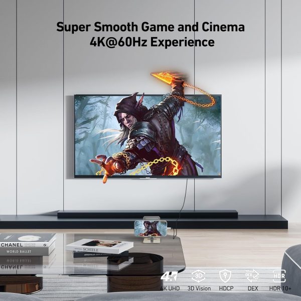 Stream 4K UHD content from your USB-C laptop(such as MacBook Pro/Air, Surface), tablet or phone to bigger display, like monitors, TV, project with HDMI input. No driver required, plug in and play. Supports resolutions up to 3840 2160@60Hz including, 2K@144Hz, 1080P, 720p, 1600×1200, 1280×1024 for high definition monitors or projectors; Note: one-way cord, exclusively from USB-C host devices to HDMI displays.