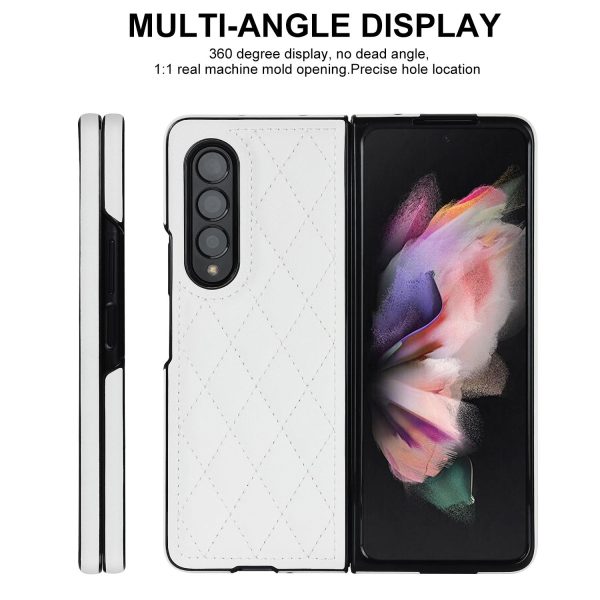 Foldable Microfiber Phone Case for Samsung Galaxy z Fold 4 – Rhombic Design – White